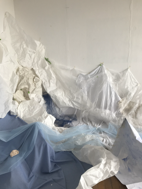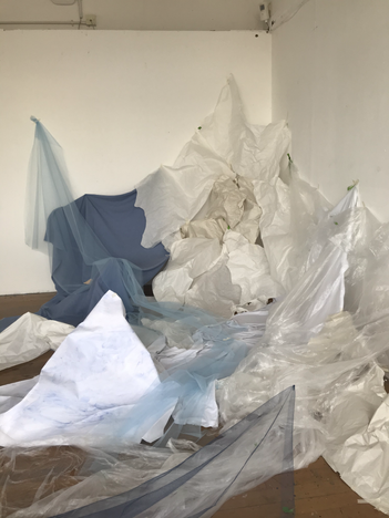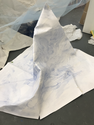 Back in the studio I began experimenting with forms and how my work interacted with my space. I started experimenting with thicker paper also known as "Bread and Butter" paper from the art store. After my talk with Louise Ritchie, she recommended a lot of resources and materials for me to research into, one being the bread and butter paper. It surprisingly gave me great results, i love the sturdiness and durability of the paper and it really takes a great form once propped up. Colour changing pigment came to mind when I considered painting onto the paper. I wanted it to change colour depending on the environment it was placed in or when people interact with it.