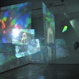 I began researching into artists such as Ruri and Ela Boyd who focus around spaces and places. In particular the pieces " reflection, refraction, projection, 2011" by Ela Boyd and "Water Vocal - Endangered" By Ruri. These pieces explore the tangible and intangible, Boyd creates hologram worlds exploring perception with her use of lighting, photography and film. Her work is particularly interesting as the projections she uses add dimensions to her work, which is something I had not thought about before, I never considered how much my projections could add or take away from a piece. I want my imagery to speak for itself and be accompanied by it's fragments scattered and dancing around the room by mirrors. like Boyd, I want create small environments or "world" within spaces and replicate the tangible and an illusion of the intangible. I enjoy recreating landscapes in my work and bringing them into the world through different means. like Ruri, I would like to focus on environmental aspects of my work more, and how the natural - as well as the urban landscape form my work. Ruri focuses on environmental issues within their work such as global warming. As seen in "Water Vocal Endangered" Ruri explores waterfalls and the natural landscape of Iceland , their home country, and how human interference has lead to the landscape changing permanently. The installation depicts waterfalls of past and present and the panels represent them. The installation has interactive audio and when viewers walk within the installation the audio is disrupted or effected. I have began experimenting with including audio and film in my work as a means to bring forward other elements, I want my work to be interactive too. I think bringing these aspects into my work will not only enhance it but further improve the depiction of my ideas.